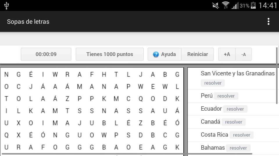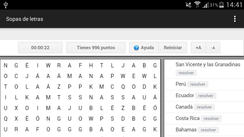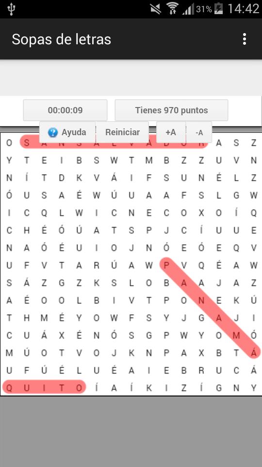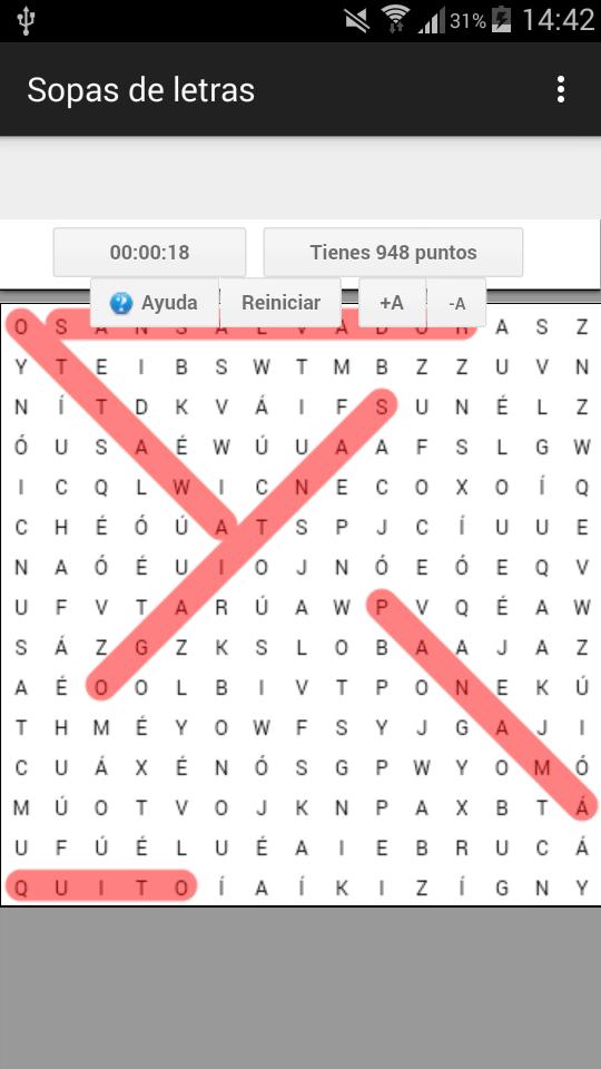 Un buen pasatiempo este Sopas de letras donde tienes encontrar las palabras ocultas , todo un clásico juego mesa completo y gratis que además de entretenido es educativo rompecabezas o Puzzle de letras desordenadas puedes cambiar el tamaño y color de la fuente.