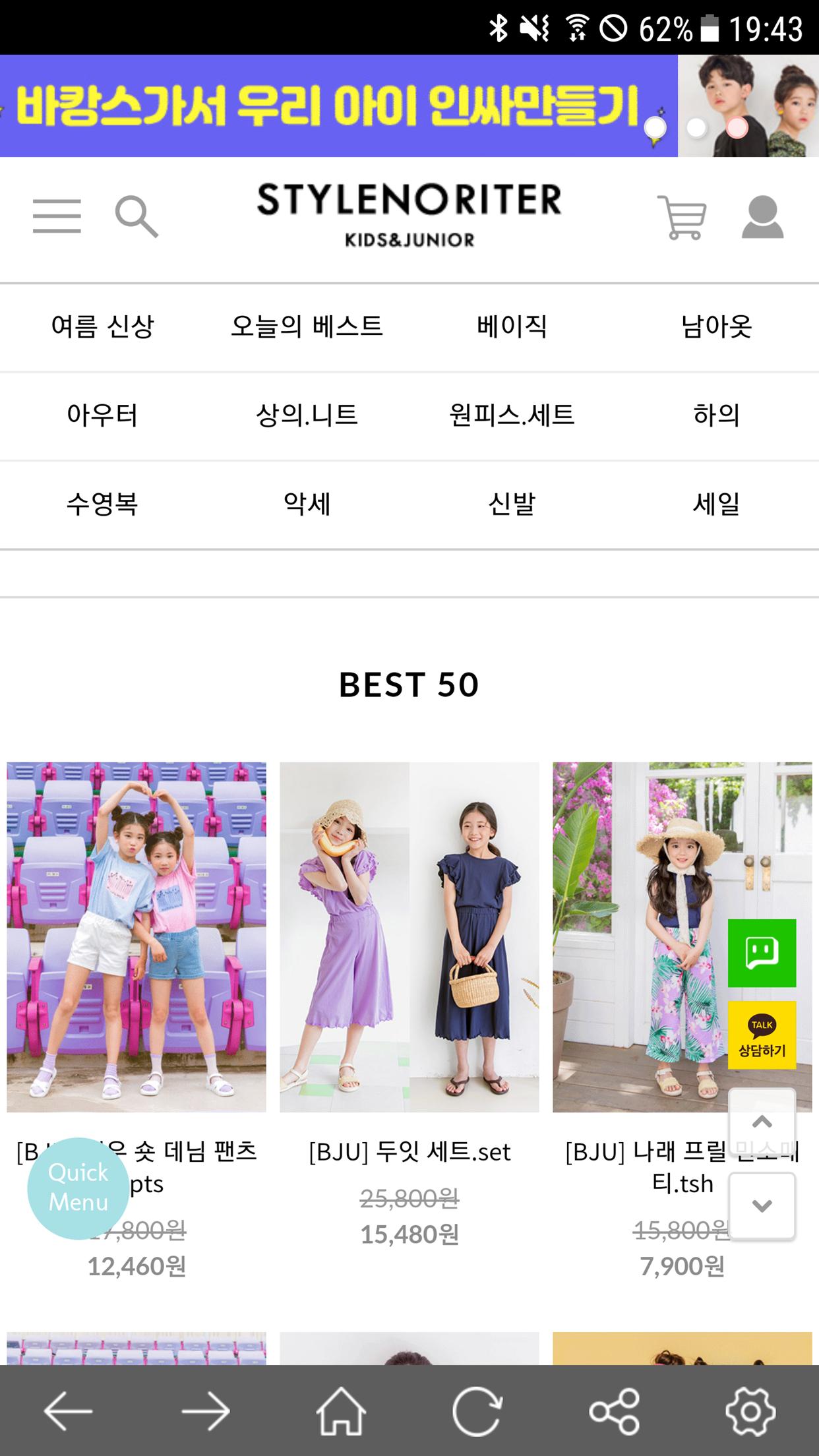 키즈부터 주니어까지 다양한 사이즈의 미니미룩을 오직!