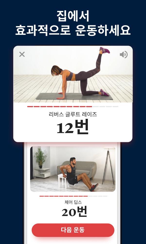 여러분의 열정과 노력만 있다면, 특별한 기구가 필요하지 않습니다! 목표 운동뿐만 아니라 운동의 모든 혜택을 보시려면 준비 운동과 스트레칭을 잊지 마시고 모든 운동을 즐기시길 바랍니다.