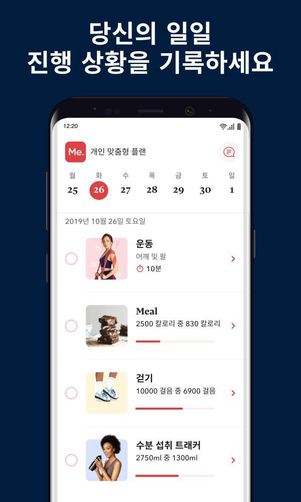 BetterMe의 당신을 위한 특별한 맞춤식 운동과 식사 플랜이 당신이 빠른 시간 내에 목표로 하는 체중 감량에 도달 할 수 있도록 도와줍니다! 매일 이 어플과 함께 하며 포기하지 않고 여러분이 바라던 건강과 운동 목표를 달성하세요.