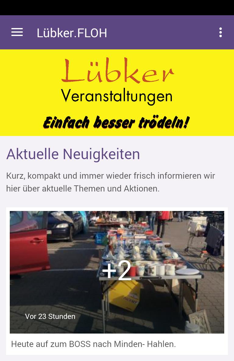 Jetzt gibt es Lübker's FLOHMÄRKTE auch als offizielle App für's Smartphone! Alle Neuigkeiten, Fotos, Veranstaltungen und Termine landen so direkt in eurer Hosentasche. Wann immer es etwas Neues gibt, klingelt's auf dem Smartphone. Und weil ein Smartphone eben auch ein Telefon ist, lässt sich per Knopfdruck gleich eine direkte Verbindung zu uns herstellen. Unsere Lübker.FLOH App sorgt immer für den direkten Draht zu uns gemäß unserem Motto: Einfach besser trödeln!