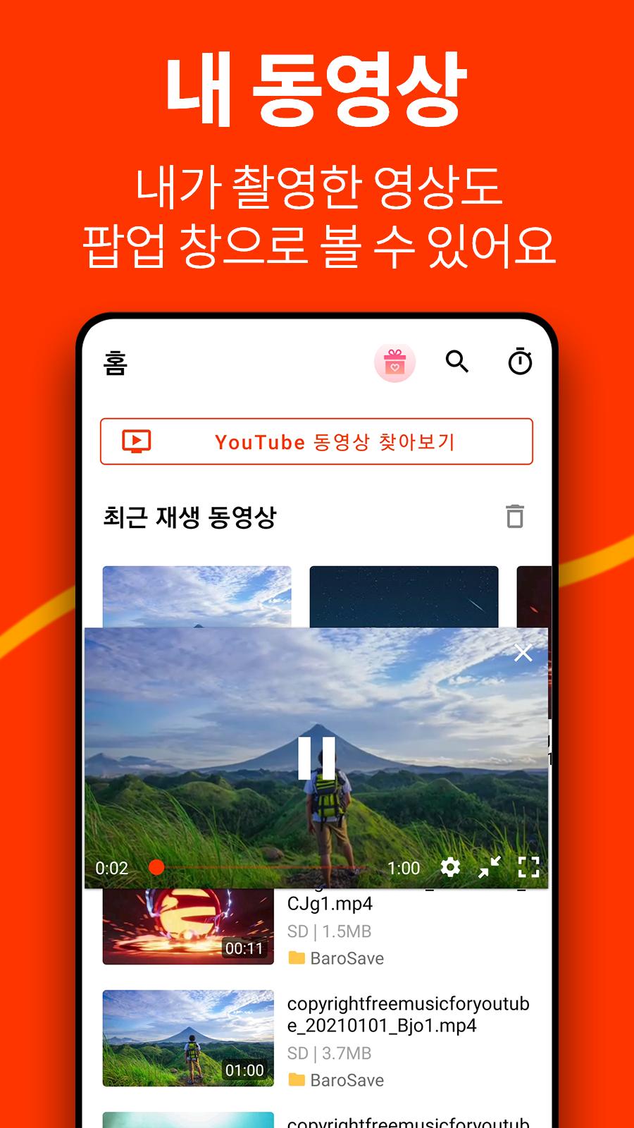- 튜브 동영상 및 휴대폰에 저장된 동영상을 팝업 창으로 재생할 수 있습니다.