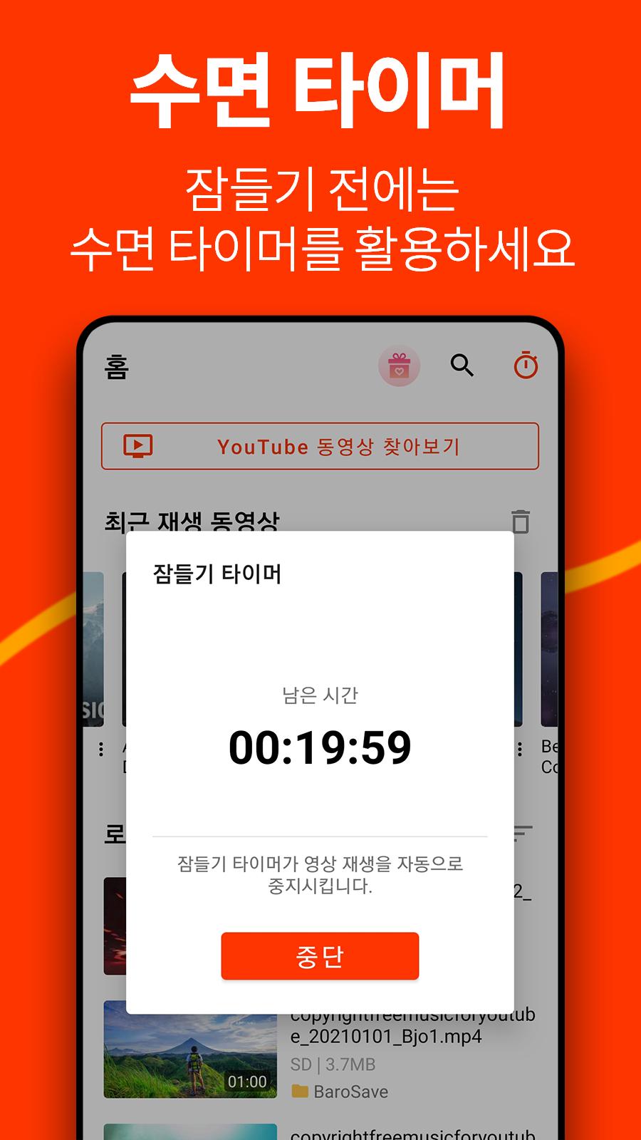 바로플레이어(바로튜브)를 이용하시면 수면 타이머를 이용해 동영상 재생을 자동으로