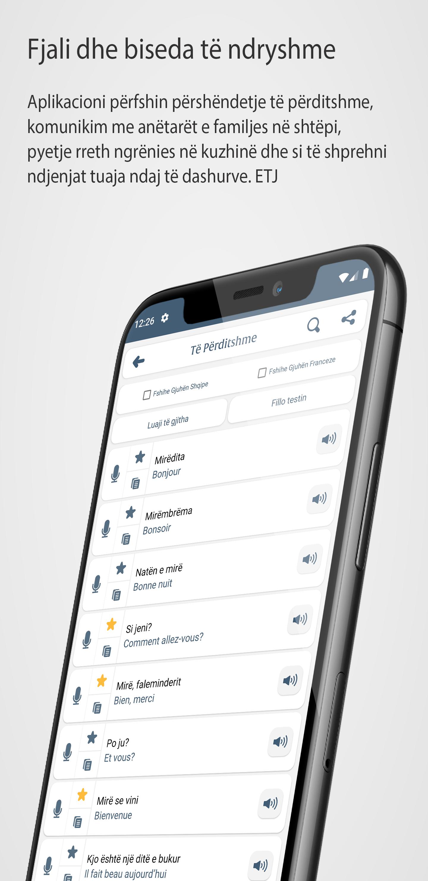 Aplikacioni gjithashtu ofron mundësinë për të dëgjuar fjalinë me zë nga frengjishtfolësit.