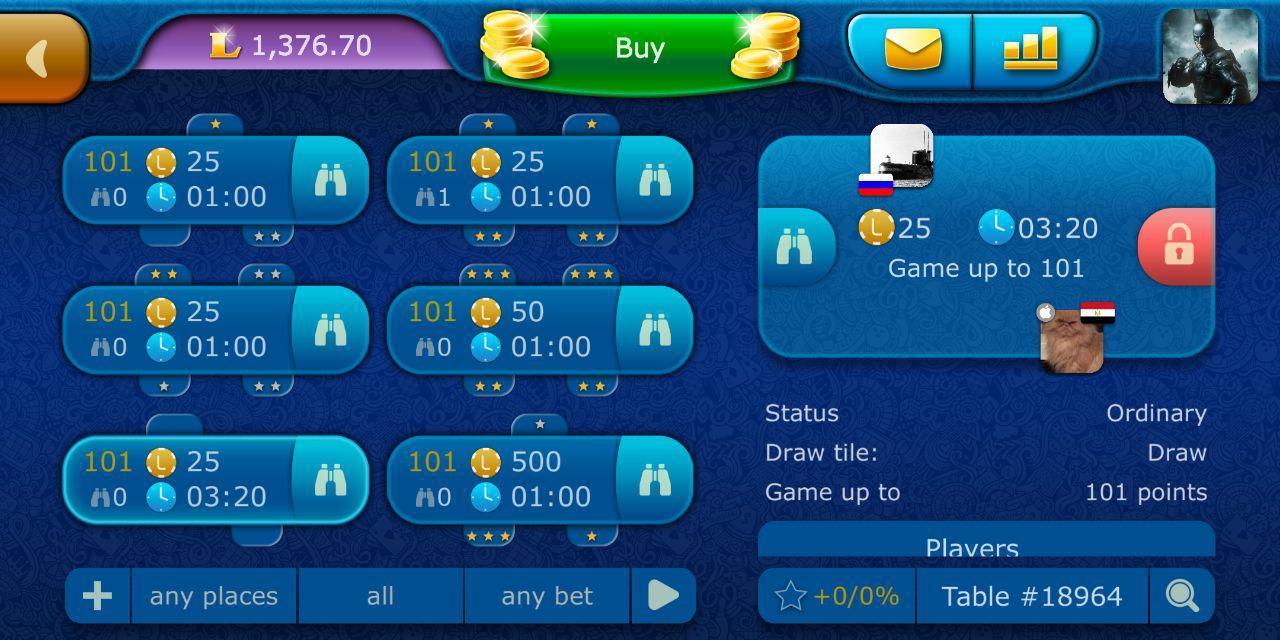Only adult and intelligent players. Game is a great way to meet new people. Play Dominoes, show your skills and prove your advantage.