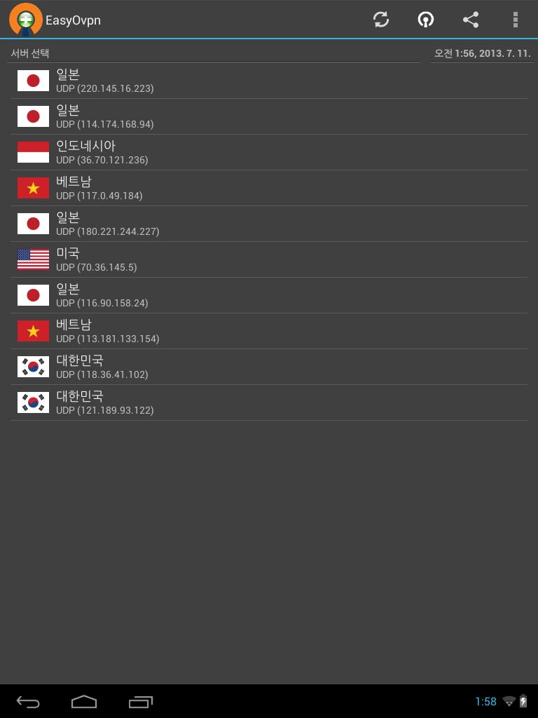 2. 응용 프로그램을 열고, 새로 고침 버튼을 클릭 한 후 서버의 목록을 표시합니다